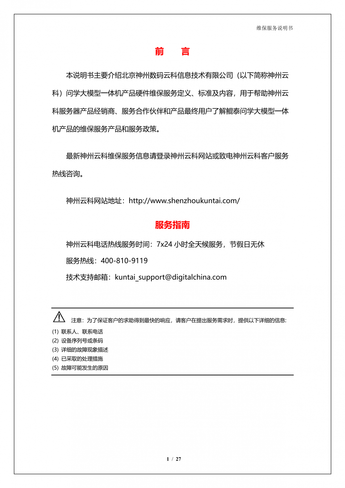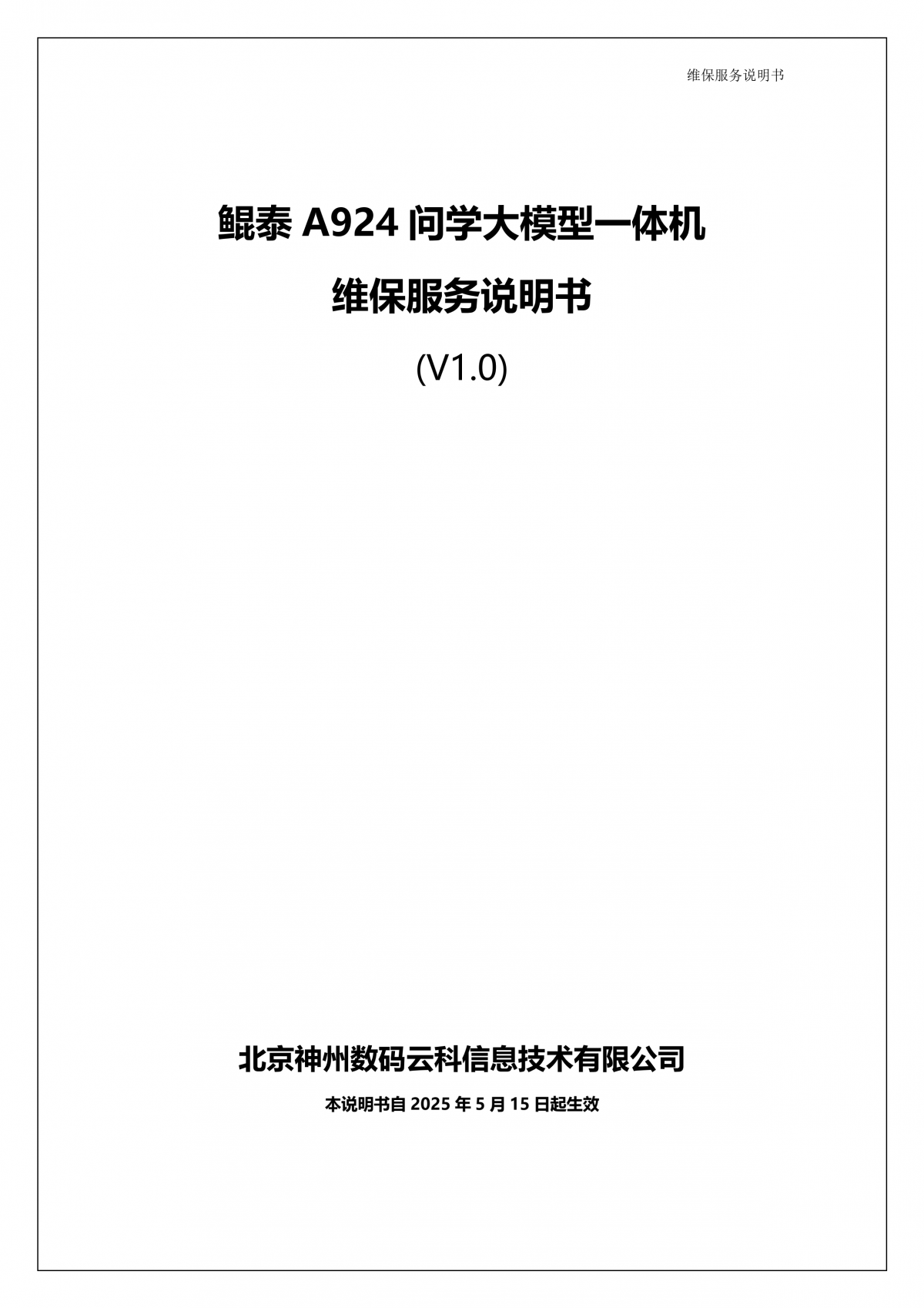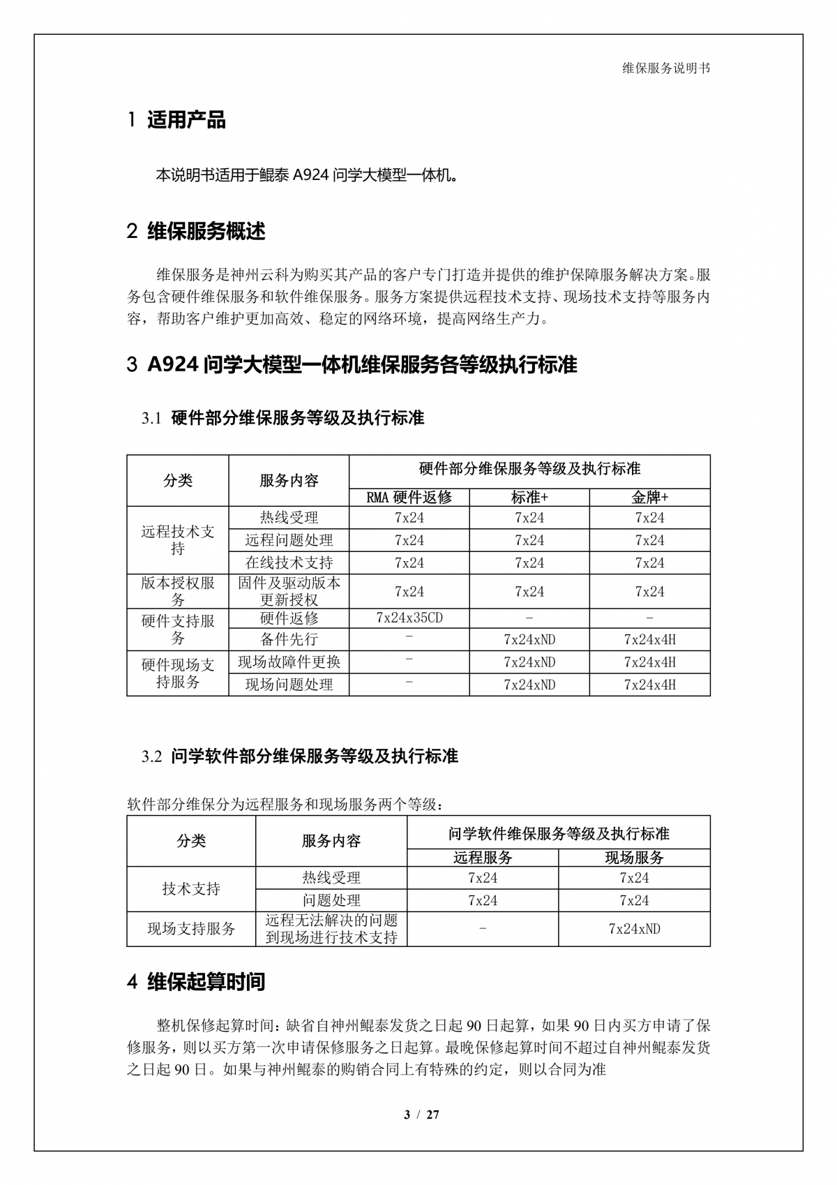 k8·凯发(中国)·一触即发A924 问学大模型一体机维保服务说明书_V1.0